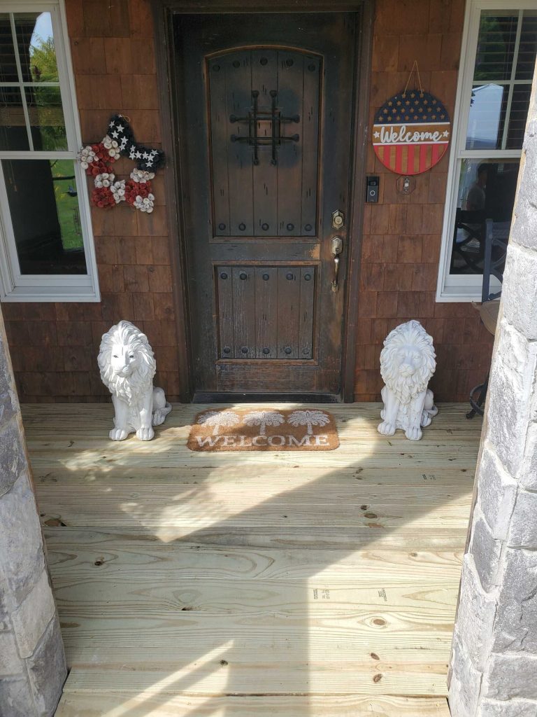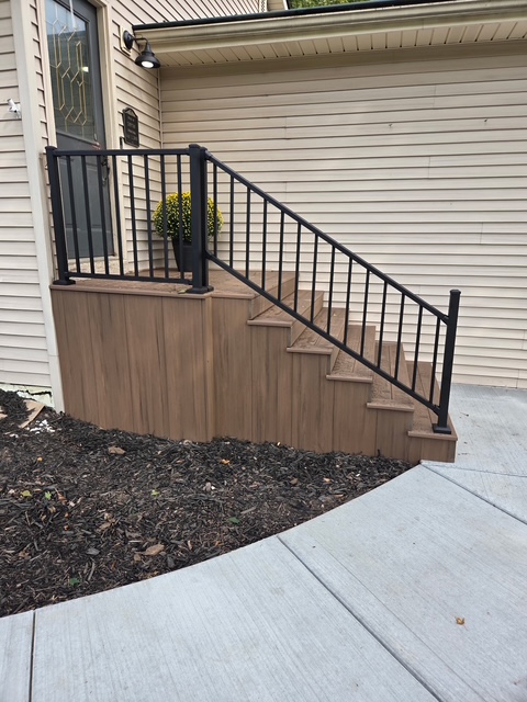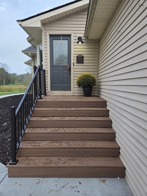 Our customers in Holly noticed their two porches were starting to show significant wear and tear from years of exposure to the elements. They reached out to us to give both spaces a fresh start. We removed the old, weathered porches and replaced them with durable TimberTech decking in the rich, warm shade of English Walnut. To complete the transformation, we installed sleek black aluminum railings that add contrast and really make the new porches stand out. The finished result is a pair of beautiful, low-maintenance outdoor spaces that the homeowners can enjoy for years to come.