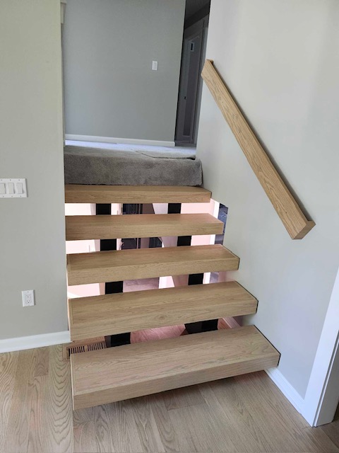 Our customers recently added a beautiful new addition to their home and wanted a staircase that would truly make a statement — and this custom build delivers. These stunning stairs were handcrafted by two of our highly skilled craftsmen, who combined modern design with exceptional woodworking precision.